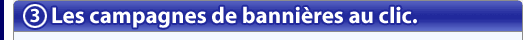 Les campagnes publicitaires par bannière sont l'une des plus anciennes méthodes de publicité sur Internet. Nous vous offrons la possibilité de diffuser vos propres bannières sur l'ensemble de nos réseaux. Nous acceptons différents formats de bannières allant de 88 x 31 pixels à 468 x 60 pixels. Vous êtes chargé uniquement pour les personnes qui cliquent sur votre bannière.